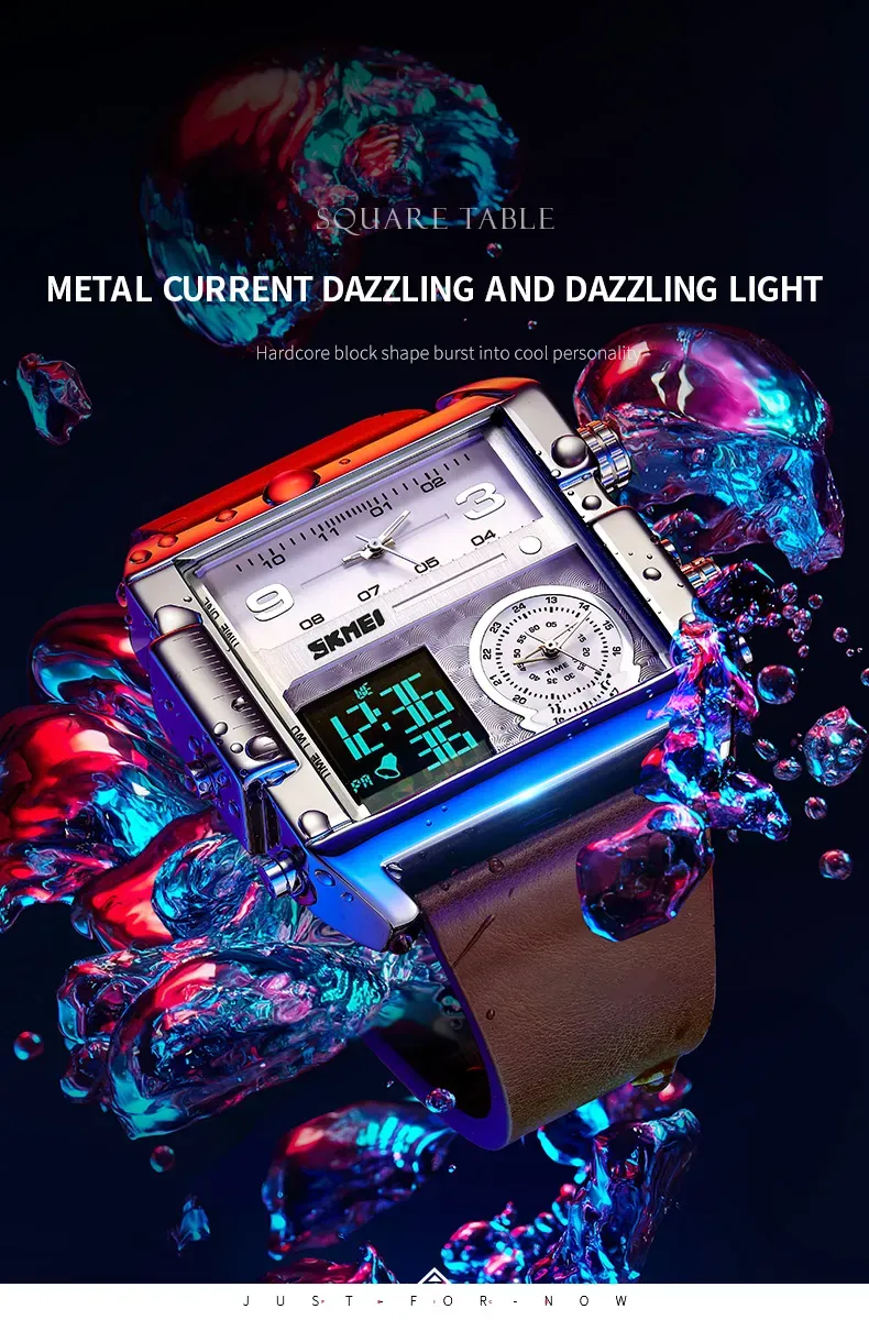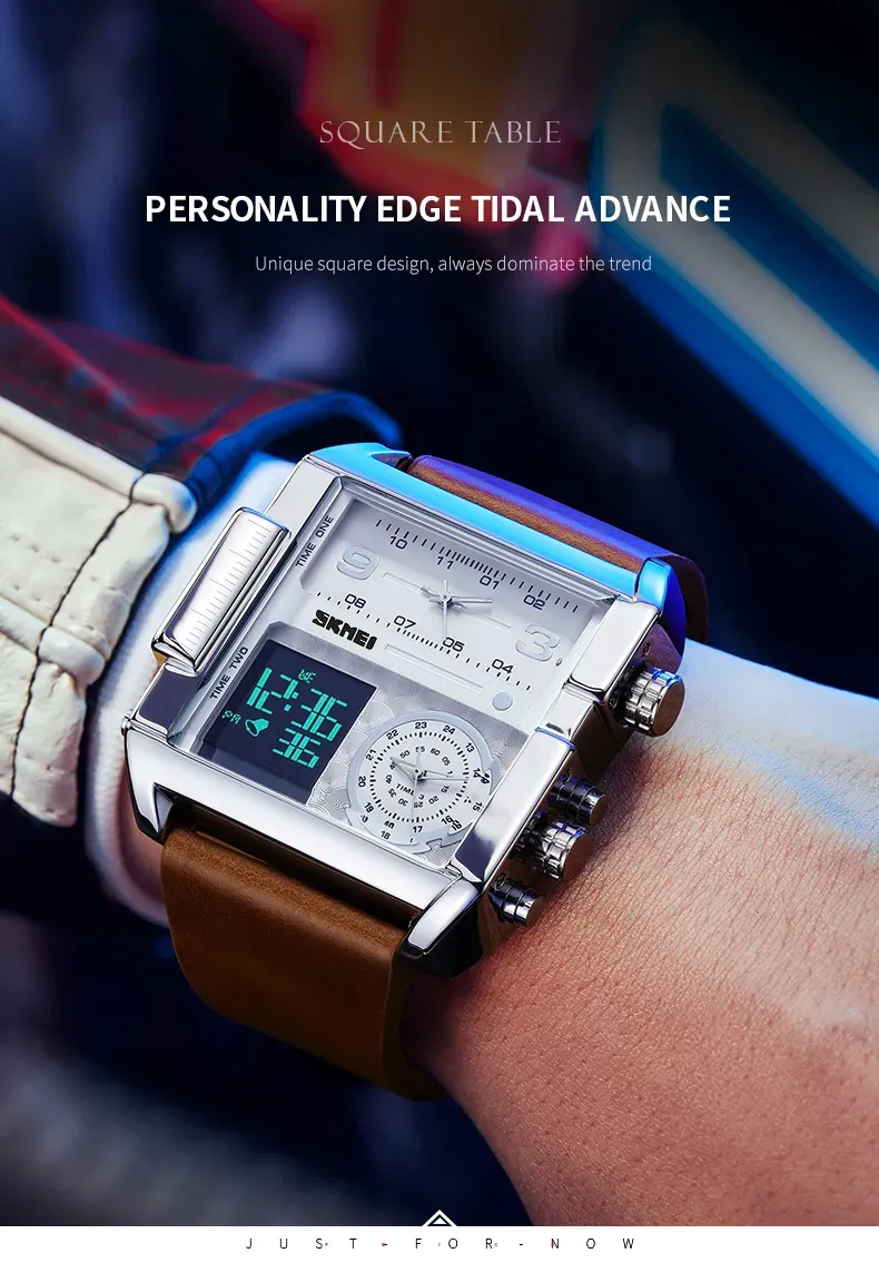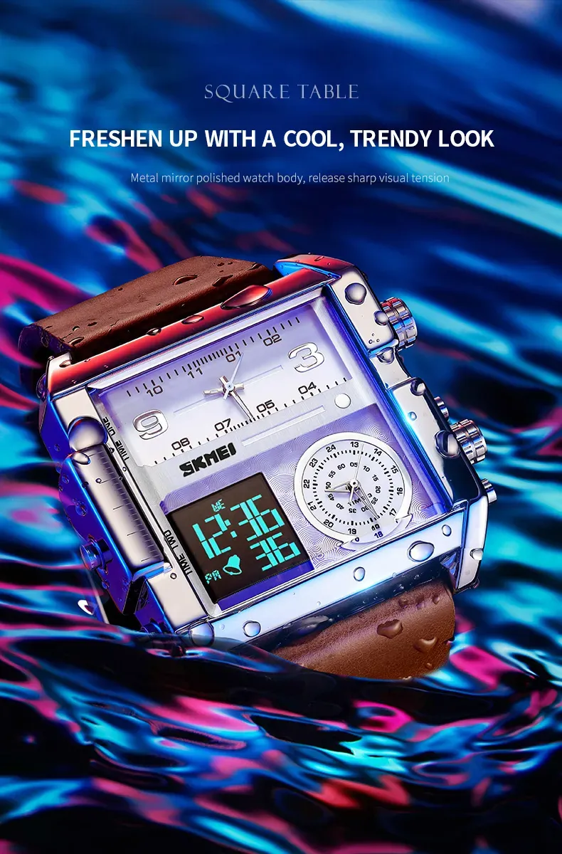 Men's waterproof square large dial quartz watch