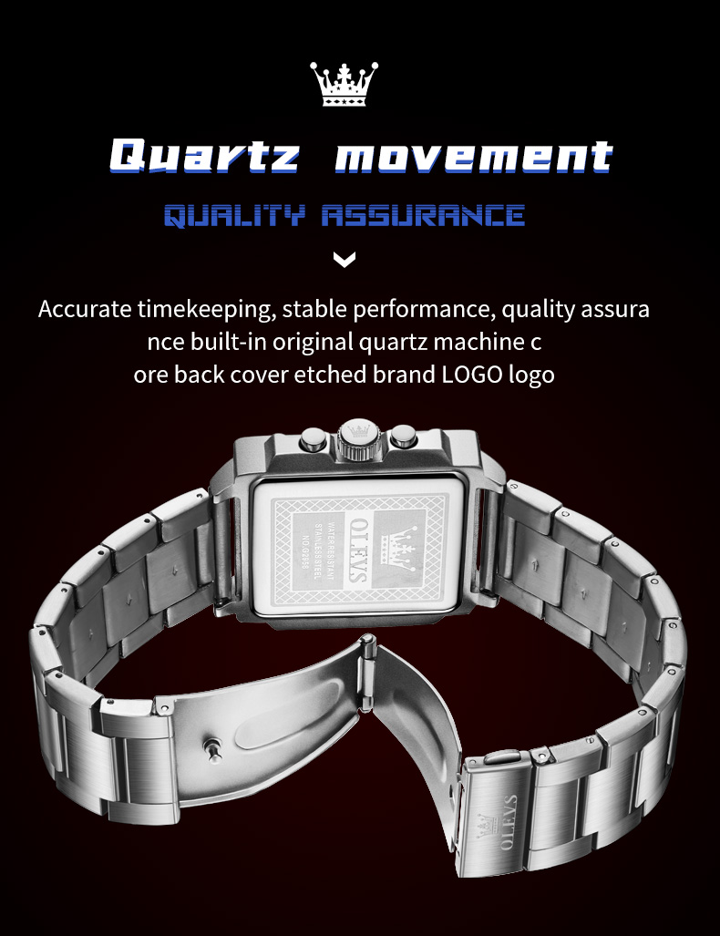 Olevs fine steel fashion multifunctional waterproof luminous quartz men's watch