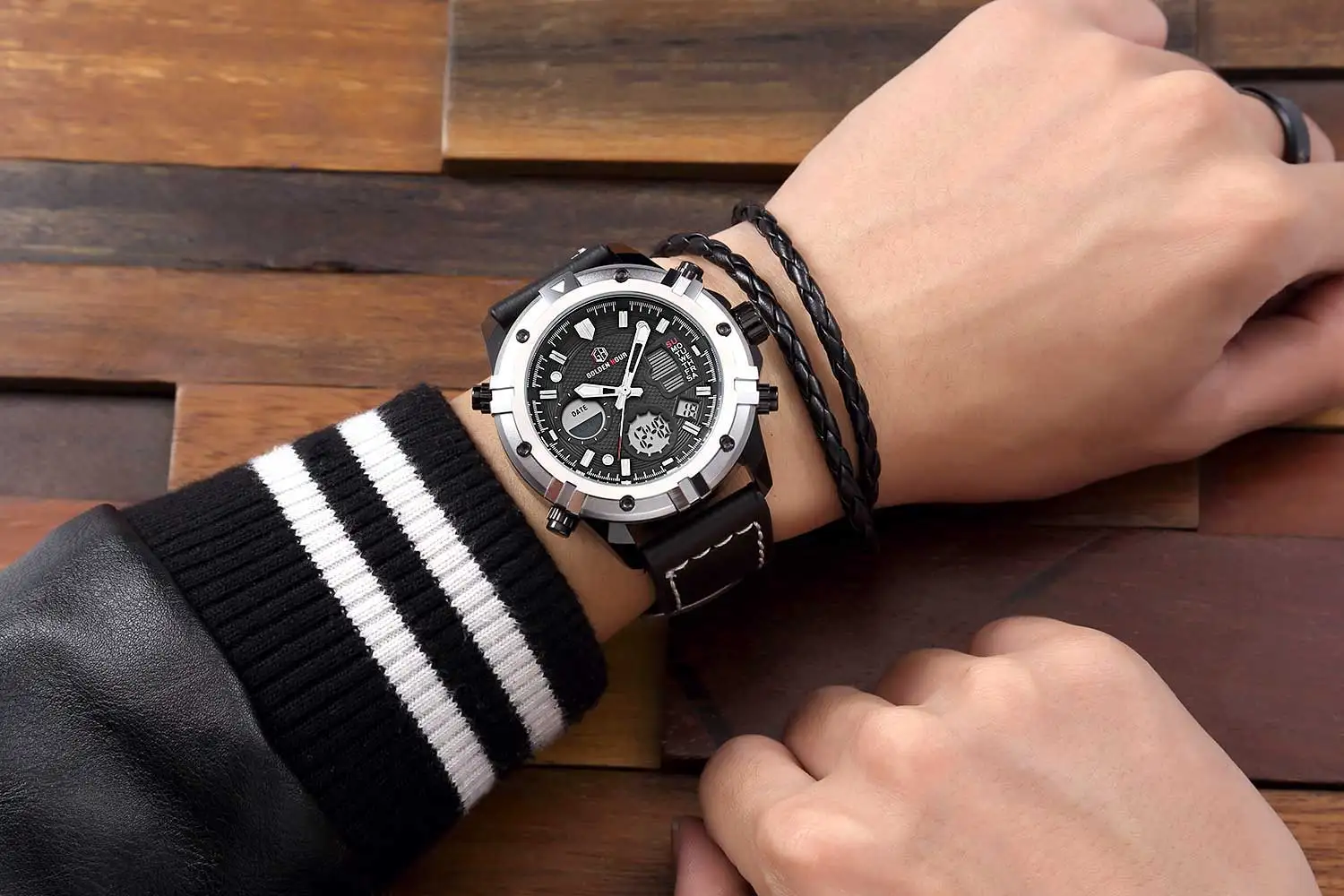 Wrist Fashion Dual Time Analog Watch Cool Customized Digital Outdoor Sports Watch for Men